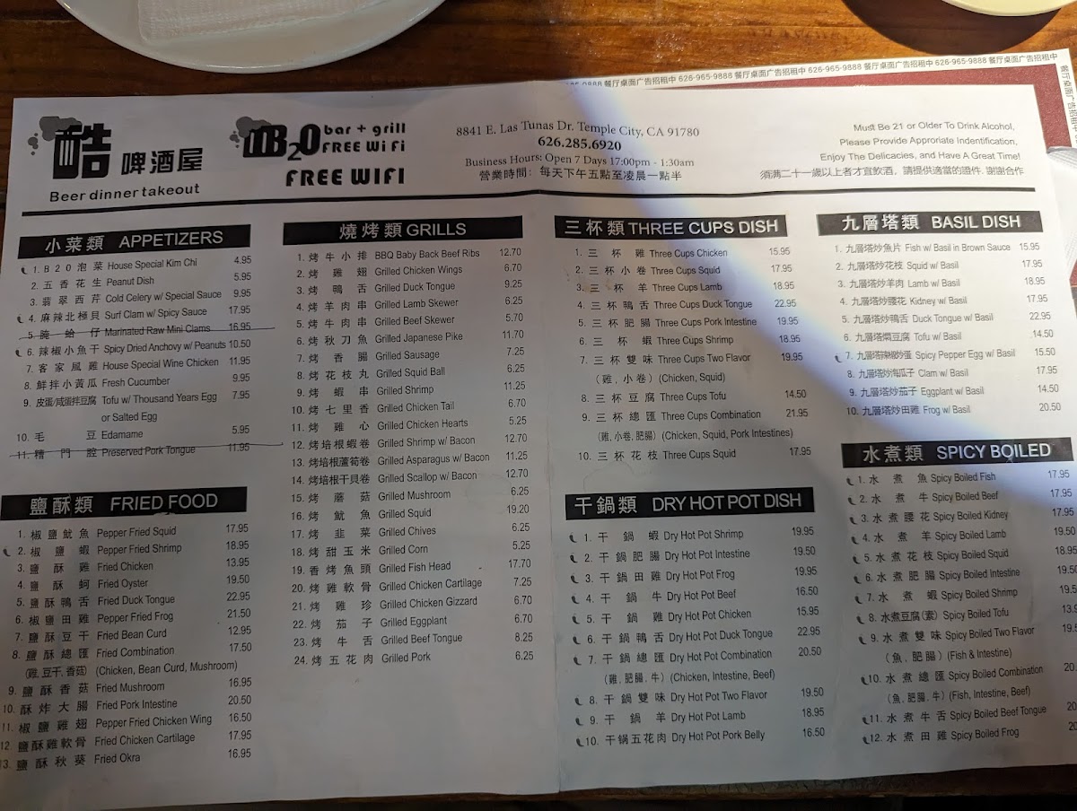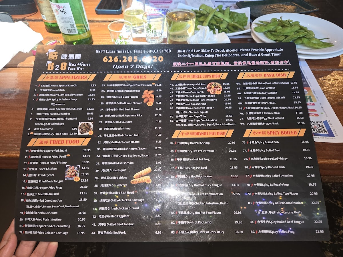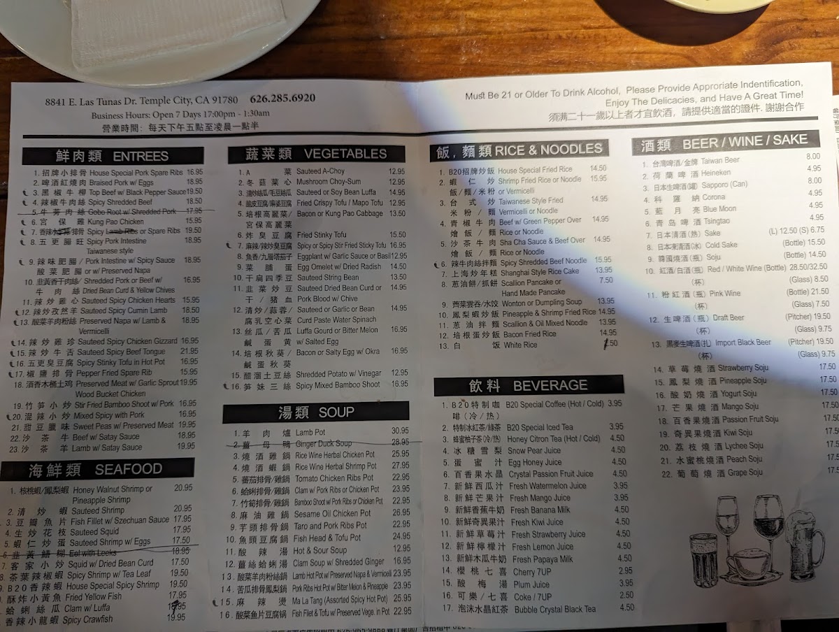 Signature items such as the Kung Pao Chicken, B20 House Special Fried Chicken Wings, and spicy pork intestine showcase the kitchen’s balance of bold spices and familiar textures, perfect for pairing with a cold beer or sake. For those seeking a more substantial bite, dishes like braised pork with eggs and Shanghai-style rice cakes offer a comforting touch, while seafood options including spicy crawfish and surf clam with basil add an extra layer of zest.